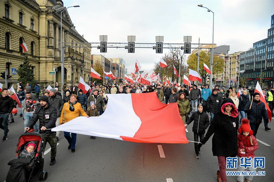 当地时间11月11日,波兰什切青市,当地举行波兰独立101周年庆祝活动。(图片来源:视觉中国)