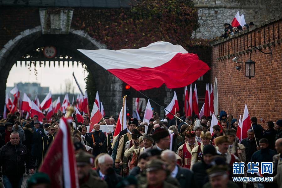 当地时间11月11日,波兰克拉科夫,当地举行波兰独立101周年庆祝活动。(图片来源:视觉中国)