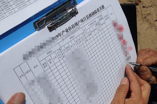 一位建档立卡贫困户在县级抽验花名册上签字。