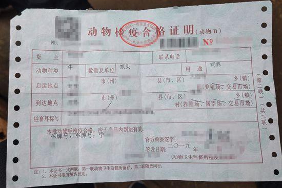 镇畜牧站一位工作人员告诉记者,开检疫合格证不收取任何费用。但由于动物在市场上是流动的,“报的时候是这些,装车的时候是那些,你怎么确定?”因此,受检疫的牛可能并非养殖户的牛,往往存在许多牛贩子钻空子,借机倒卖牛票与耳标,而政府部门对他们“防不胜防”。