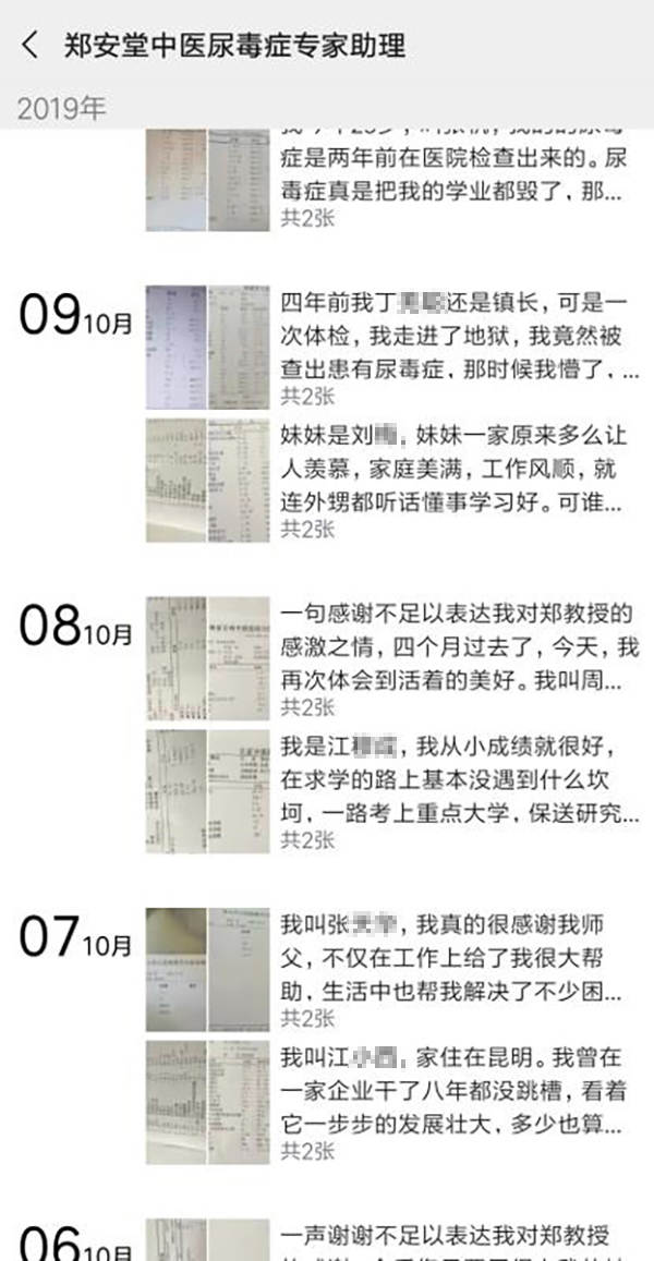 “郑安堂助理”朋友圈发布的“治愈”案例