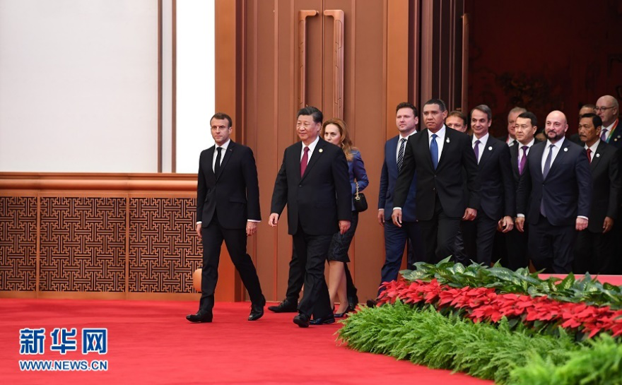 11月5日,第二届中国国际进口博览会在上海国家会展中心开幕。国家主席习近平出席开幕式并发表题为《开放合作 命运与共》的主旨演讲。这是习近平同外方领导人一同步入会场。新华社记者饶爱民摄