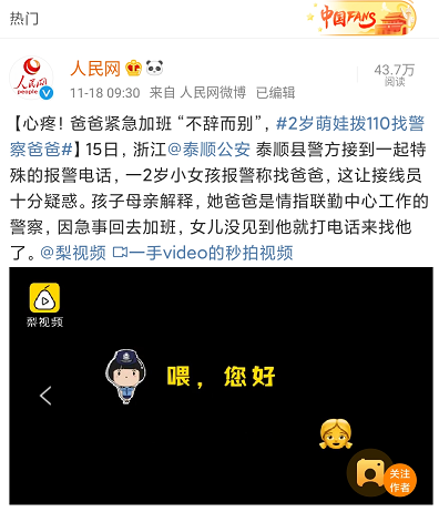 遇到困难要找警察叔叔。在温州泰顺,一个两岁的萌娃拨打“110”报警电话找爸爸,究竟是怎么回事?