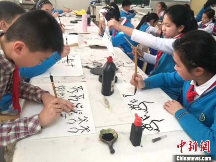 据了解,2017年以来,瑞安市实验小学与瑞安市甲骨文学会合作,开展甲骨文传承进校园活动。甲骨文学会负责师资培养及专业指导,实验小学负责课程开发、教学及教材编写。目前,该校开设“甲骨文书法”和“甲骨文化”两门课程,每周五下午开课,已有近200名学生参与了学习。