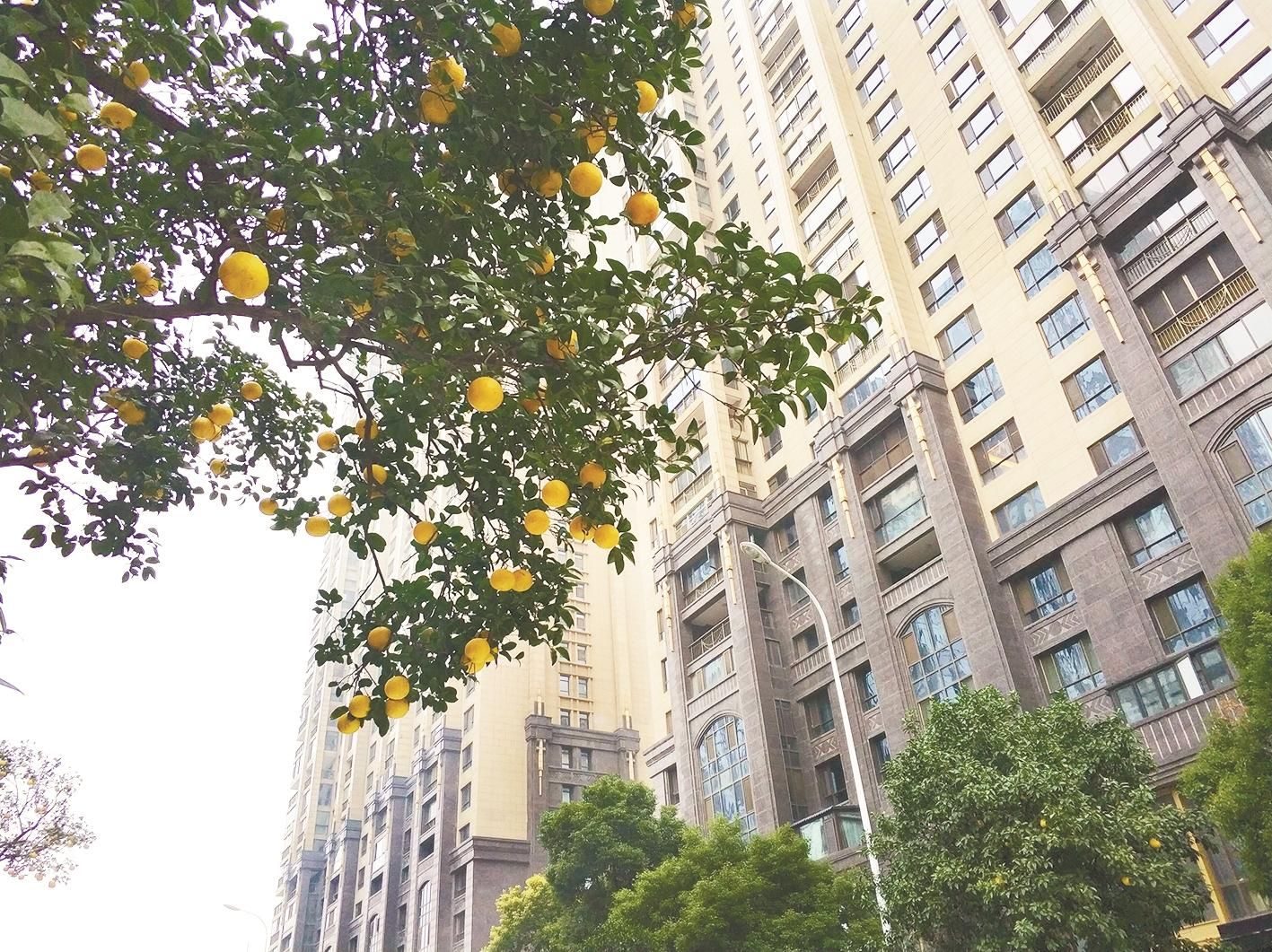 我们只负责装点街景和市民的生活,味道当然就不如柚子好吃。不信,等我们自然掉落时捡一个尝尝,但现在千万不要打我下来,谢谢!
