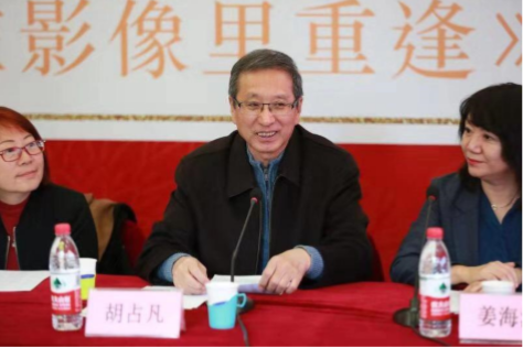 与会领导和专家围绕纪录片的新思维进行了热烈研讨。胡占凡在讲话中指出,中央新影是中国纪录片界的一面旗帜,前身是成立于 1938 年的延安电影团,是中国革命历史的见证者和纪录者,具有辉煌的历史。影像资料和创作团队是新影最弥足珍贵的两项资源,在今年庆祝新中国成立七十周年的重点项目和重点影视片中,新影的胶片资料和新影团队做出了重要贡献。《在影像里重逢》这部作品既是新影光荣传统的传承,也是新时代创新精神的弘扬。未来,相信在中央广播电视总台的领导下,央视纪录频道和新影集团会继续扛起中国纪录片界的旗帜,既能坚守传统电视纪录片的价值高地,又能适应新时代的新要求,不断创新和突破,持续推出更多的精品力作,满足人民不断增长的精神文化生活的需要。
