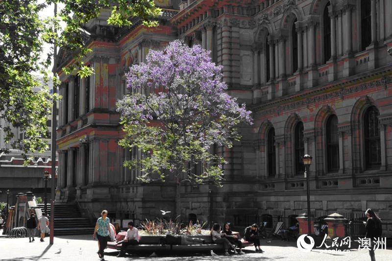 悉尼市政厅附近的蓝花楹(摄影 刘莹)