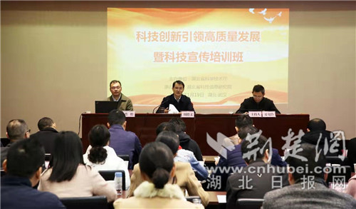 荆楚网客户端-荆楚网消息(记者叶辉通讯员石恋)11月19日至20日,2019年科技创新引领高质量发展暨科技宣传培训班在武汉开班。培训由湖北省科技厅办公室二级调研员夏克俭主持,湖北省科技厅副厅长、党组成员周德文出席开班式并讲话。17个市(州)、直管市、林区科技局,34个县(市、区)科经局,厅机关处室,直属单位近100人参加此次培训。