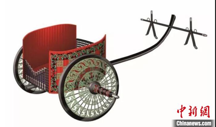 图为马家塬墓地设计考究、工艺复杂的随葬车辆复原图。(资料图)甘肃省文物考古研究所供图