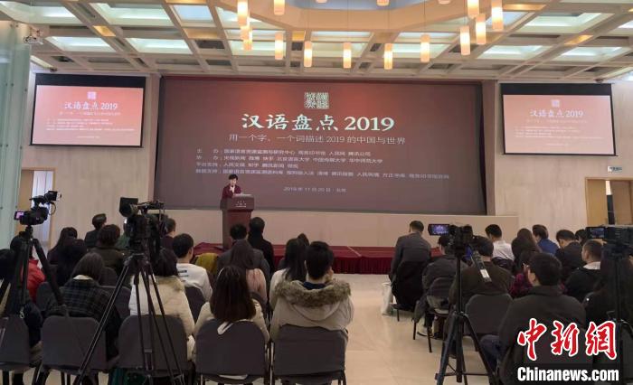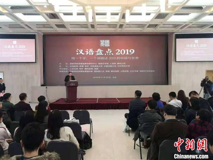 11月20日,由国家语言资源监测与研究中心、商务印书馆等单位联合主办的“汉语盘点2019”在北京启动。图为发布会现场。 应妮 摄