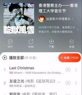 实际上,此前两日香港警方被曝出对暴徒的“攻心”方式还是播放歌曲,在得知电影《监狱风云》主题曲《友谊之光》,以及香港歌手陈奕迅演唱的《十面埋伏》、李克勤演唱的《告别校园时》为播放曲目后,大陆网友为香港警方拟定了一份名为《香港警察主办——香港理工大学音乐节》的歌单。↓