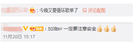 对此有网友表示,阿sir加油,一定要注意安全;有网友则感叹,今晚又要循环歌单了。↓