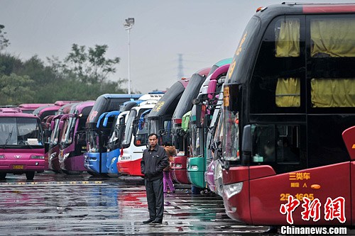 资料图:客运车站停满了大客车。中新社发 洪坚鹏 摄