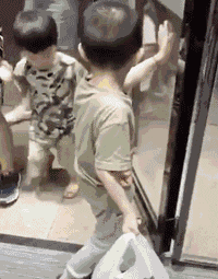 一个5岁的男孩,第一个走进门,却没有着急离开,用瘦小的身体抵着玻璃门,让后面的小朋友和家长通过。