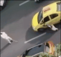 这时,一辆出租车司机发现情况不对,便把车停在大爷面前,赶忙下车扶住慌乱的大爷。