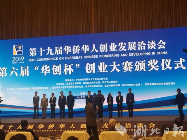 湖北日报讯(记者黄璐、王婧)11月21日上午,在第十九届“华创会”开幕仪上举办了“华创杯”创业大赛颁奖仪式,斩获一二三等奖的10个项目上台领奖。