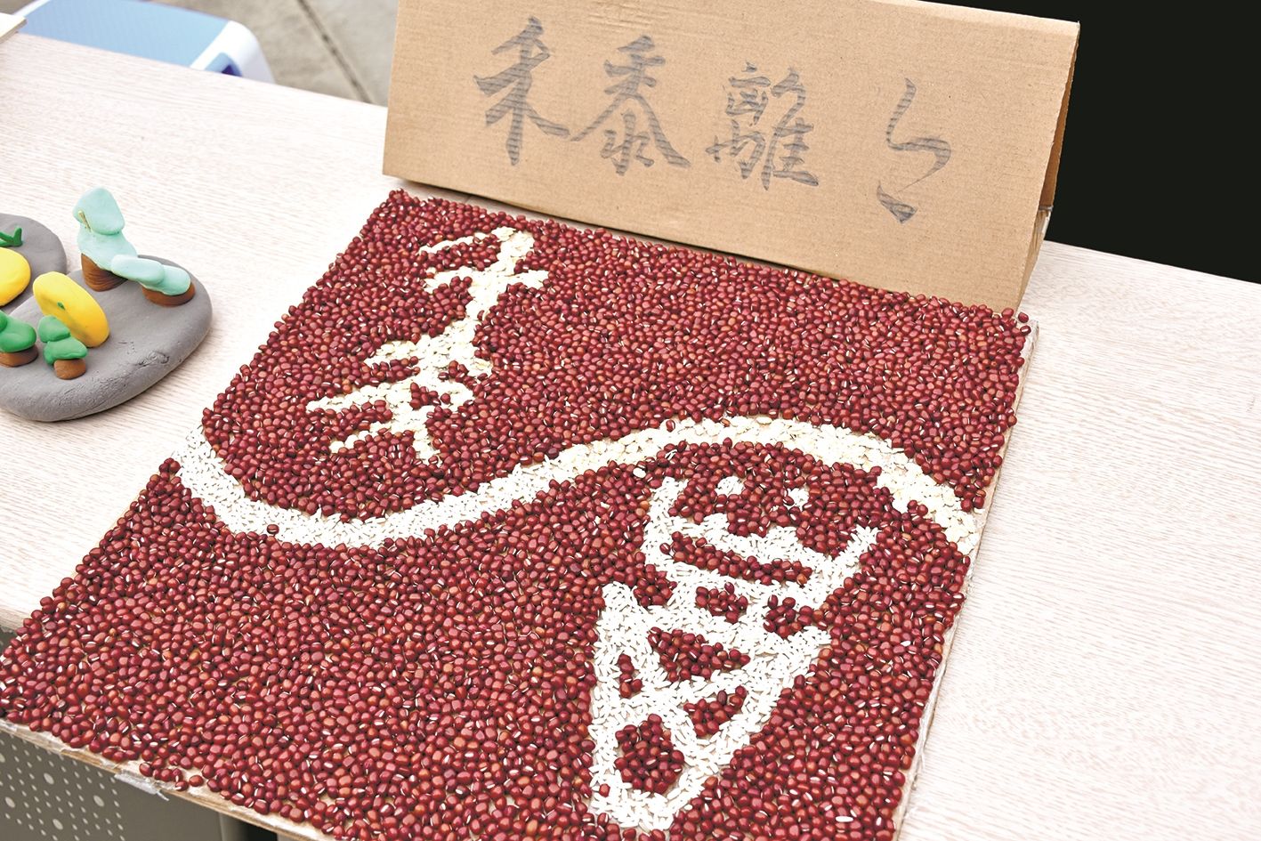 用镂刻木板和蜡烛的光影表现的“光”字,与罗盘结合配以连环画解析的“东、南、西、北”,用桑枝桑叶粘贴出的“桑”字,用代表五谷的粮食颗粒分色粘贴出的“农”字……记者在展览现场看到,干花、超轻黏土、积木、团扇、宫灯、陶器,都成为学生“写”字的工具;衍纸、镂刻、篆刻、刺绣等艺术手法,体现出甲骨文与金文的历史厚重感。