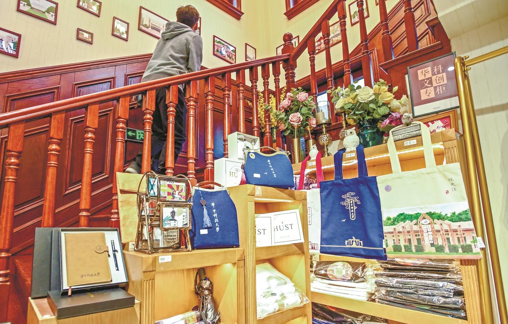 记者看到,书店的装修陈设融入许多华师元素,镂刻华师精神的立柱,绘有华师标志建筑的文化墙,图书展柜中设有校长和教授推荐的书籍专柜,文创区线上线下销售的产品均由华师学子设计。