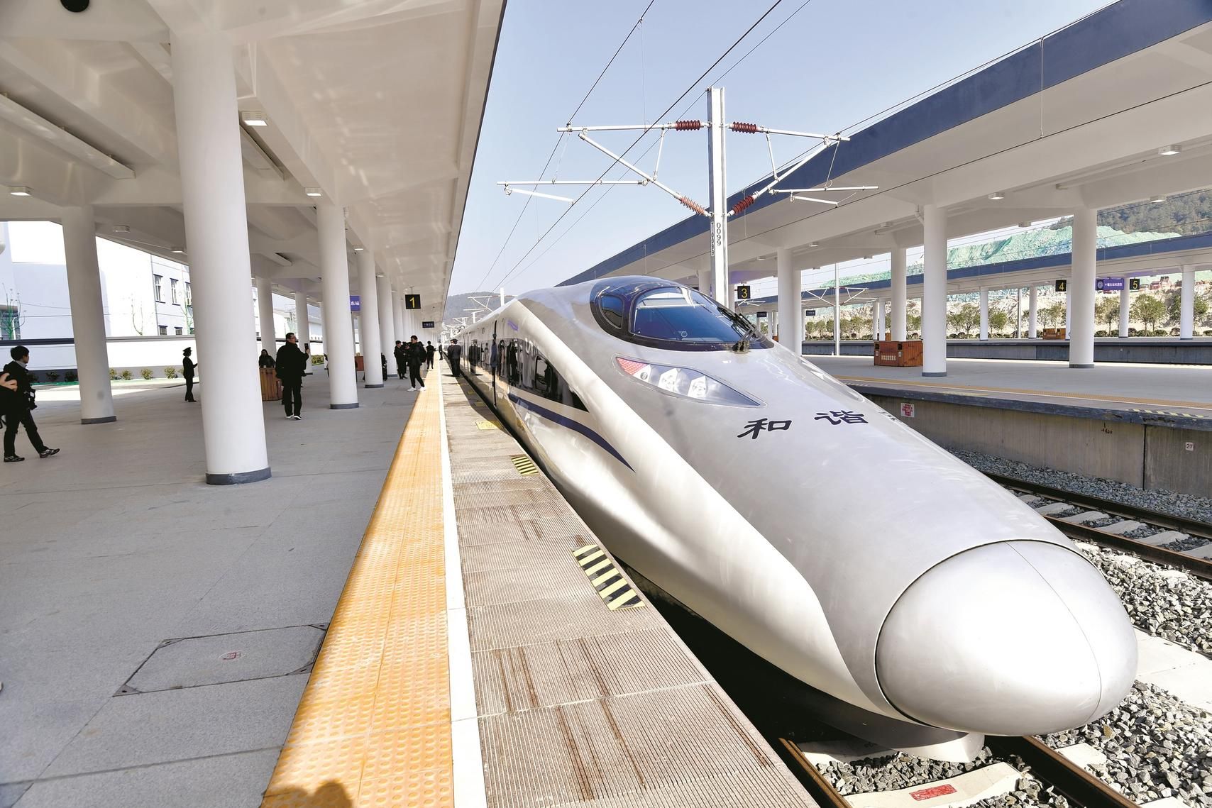 汉十高铁开通在即,沿线车站都在进行最后的设备调试工作。图为试运行高铁抵达十堰东站 楚天都市报记者李辉摄