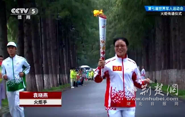 袁晓燕作为火炬手参加第七届军运会火炬传递仪式。通讯员供图。