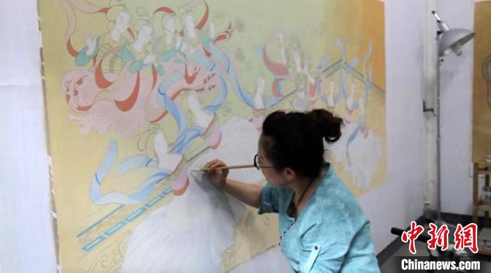 图为王亚林正在临摹敦煌壁画。 高莹 摄