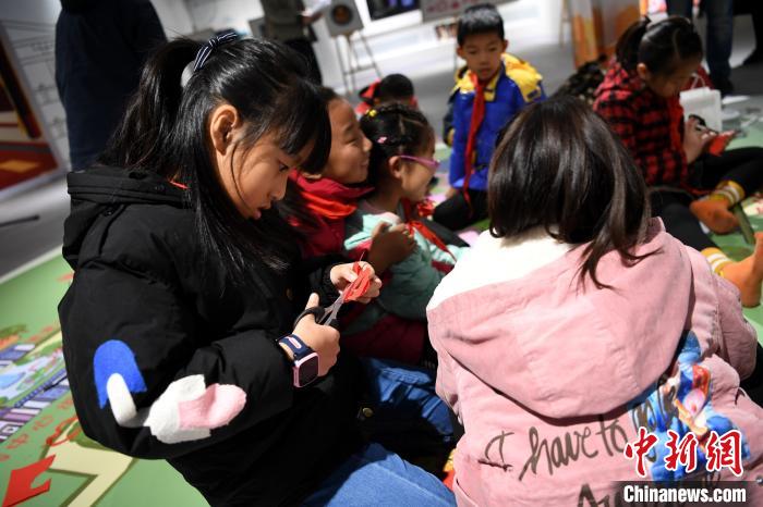 本次展览除作品展示外,现场还设置了“讲故事、学剪纸”的互动体验区域,通过现场演示教学、绘本阅读等教育互动类配套活动的实施,寓教于乐,实现“非遗”活态传承的目的。来自西安泾渭学校的小学生们参加了互动活动,在讲故事、学剪纸的互动体验中了解、认知剪纸及其背后的文化。