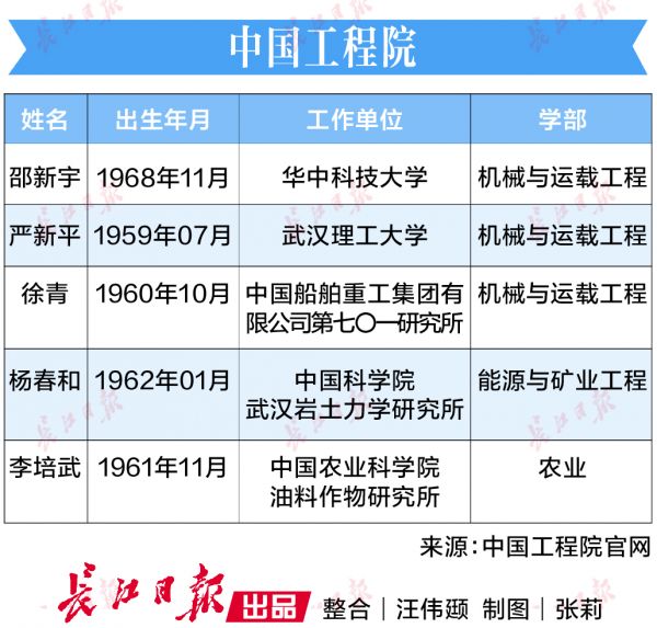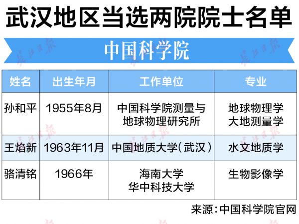 长江网11月22日讯 11月22日,中国科学院学部官网发布了《2019年中国科学院院士增选当选院士名单》,新增64位中科院院士,武汉地区3人入选。同日,中国工程院公布了2019年院士增选结果,全国新增选75位院士和29位外籍院士,武汉地区有5人当选。