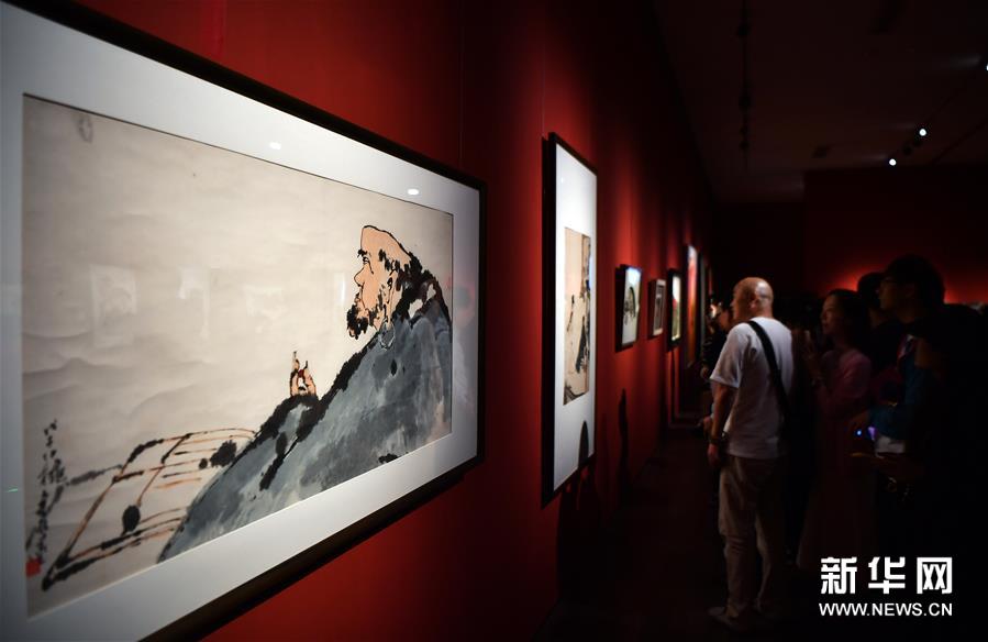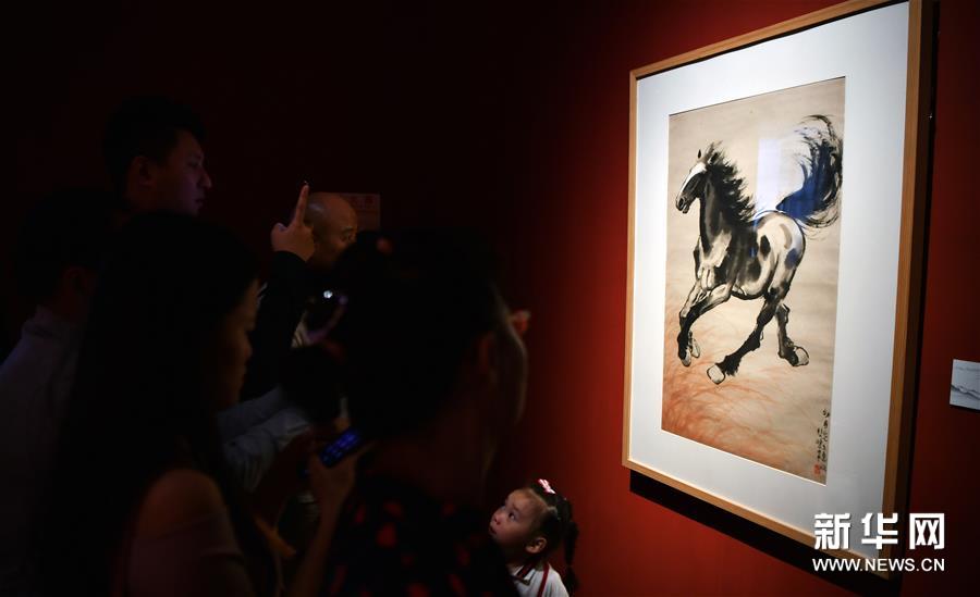 11月23日,观众在观看徐悲鸿中国画作品《奔马》。新华社记者郭程摄