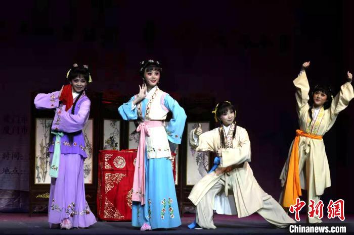 中新网厦门11月25日电 (记者 杨伏山)历时一周的“闽南传统艺术种子培训-歌仔戏”冬令营,24日在厦门圆满划上句号。跨海前来参加培训的台湾青年演员,与厦门歌仔戏研习中心的青年演员,同台共演了一台有关“梁祝化蝶”的折子戏。