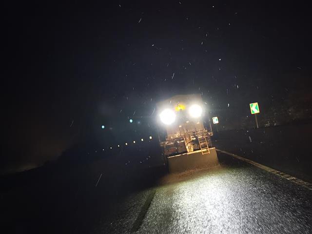 25日凌晨1点30分左右,金龙隧道应急值守驻点通报“荆楚第一隧”——金龙隧道段出现雨夹雪,养护人员立即巡查全线,对贺家坪互通至金龙隧道段进行预防性融雪剂撒布作业,避免主线道路结冰。