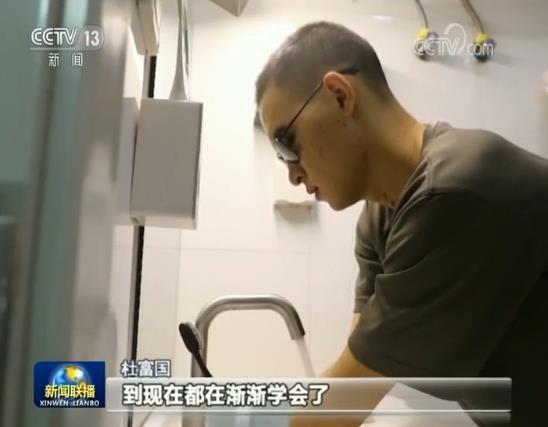 央视网消息(新闻联播):在云南边境扫雷时为保护战友失去双眼、双手的杜富国,一年来凭借惊人的勇气和毅力坚持康复训练,努力让自己实现生活自理。一起来看看他现在的状况。