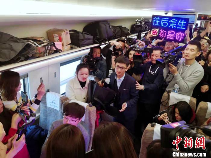 借高铁线开通之际,中国铁路济南局集团公司青岛电务段工长宋统全向相恋了8年的女友求婚。 沙见龙 摄