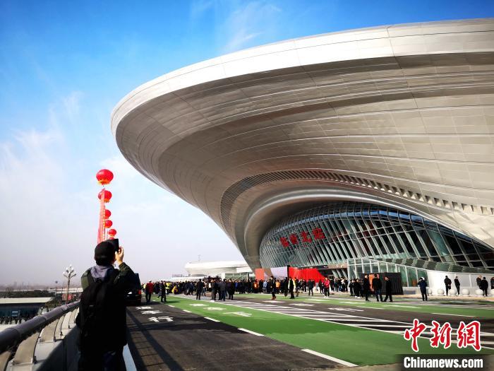 11月26日,日照至兰考高速铁路日照至曲阜段正式投入运营,乘客拍照留念。 沙见龙 摄