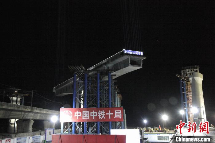 高铁建设过程中,中铁十局八公司完成了跨京沪高铁高上1号特大桥转体施工项目,该项目是目前跨京沪高铁转体角度最大、吨位最重的转体项目。 沙见龙 摄