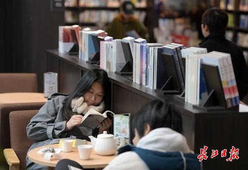 长江日报-长江网11月26日讯 26日,武汉天气寒冷。在汉阳区人信汇物外书店内,不少市民在“畅游”书海,形成一幅暖意融融的温馨画面。(记者史伟 摄影报道)