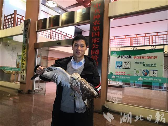 据鉴定,这只受伤的候鸟是国家二级保护动物——毛脚鵟,又名雪白豹、毛足鵟,因丰厚的羽毛覆盖脚趾而得名,主要以田鼠等小型啮齿类动物和小型鸟类为食,是一种少见的冬候鸟及候鸟。它体重650-1100克,上体呈暗褐色,下背和肩部常缀近白色的不规则横带,尾部覆羽常有白色横斑。大九湖管理处又连夜将其护送至神农架国家公园管理局科学研究院继续救治,目前情况基本稳定。