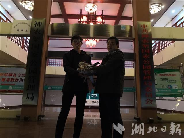 11月21日,一位湖南籍游客在神农架林区下谷乡板桥河村省道附近,发现了一只翅膀受伤的候鸟。他迅速联系神农架国家公园管理局报告情况,并对候鸟受伤部位进行简单处理,又主动驱车将其送至神农架国家公园管理局大九湖管理处,为小家伙争取了宝贵的救治时间。