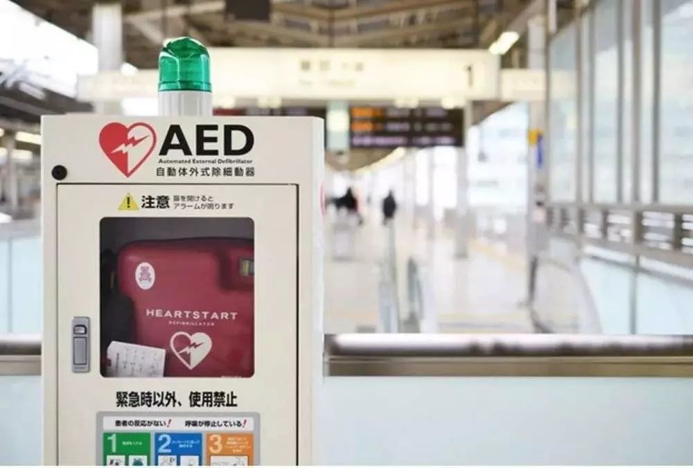 设置于日本某车站的AED设备。日本规定,在一天人流量过万的车站,都需要设置AED 图片来源:日本国营铁路官网