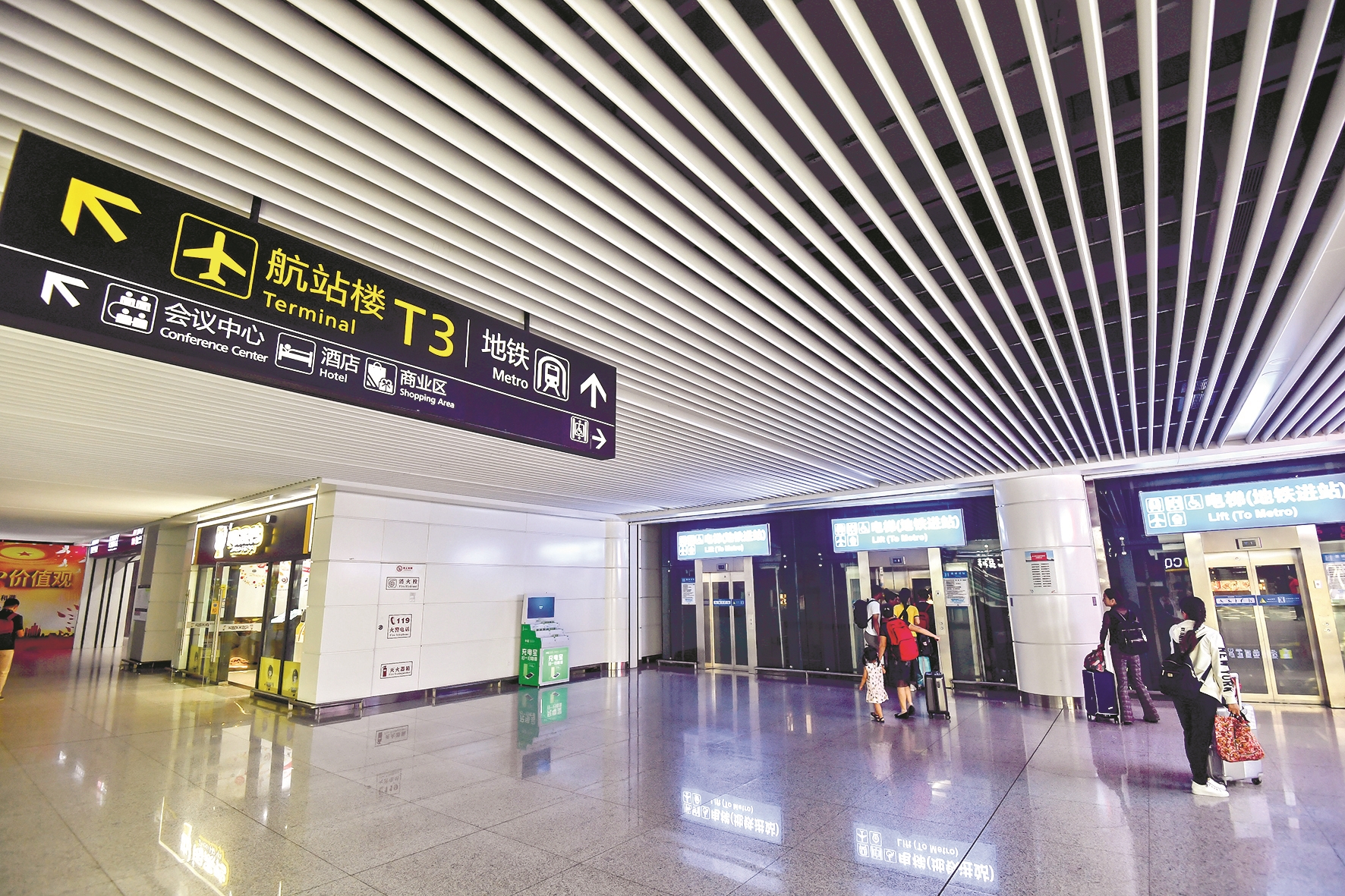 机场线的开通,将地铁延伸至位于武汉最北端的第一城市窗口——天河机场。地铁机场线全长19.8公里,起于天河机场,经巨龙大道、盘龙大道、宏图大道、金银潭大道,至金银潭站与2号线一期工程贯通运营。近日,记者在天河机场站看到,该站中空结构的站厅与站台层上下打通,大理石立柱直达站厅顶部,营造出空间的通透之感。整个站台宽敞明亮,充分考虑到了机场人流量和携带大行李旅客的乘车方便。