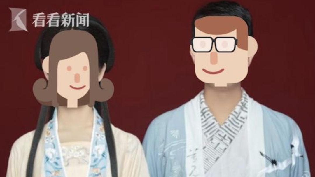 穿着汉服,梳着发髻一对新人拿着汉服照到福建厦门市思明区民政局做婚姻登记却被工作人员告知不能使用