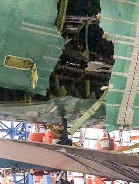 根据西雅图时报获得的现场测试照片,777X机型机翼后方的机身出现撕裂口,并且临近的一扇舱门也在测试中脱落。