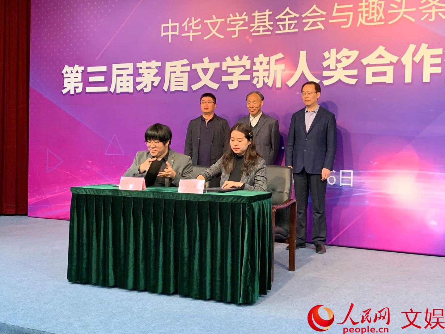 人民网北京11月28日电 第三届茅盾文学新人奖合作签约仪式近日在京举行,中华文学基金会与趣头条作为签约双方,将为繁荣文学创作和促进网络文学健康发展做出努力。