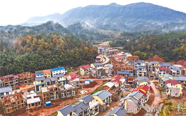 11月27日,绵绵冬雨中,远安县九子溪安置小区新村面貌初具雏形,工程正有序推进,不少群众将搬进新村过春节。远安县将棚户区改造和征地拆迁户集中到九子溪安置小区,打造“住得够安逸、经得起岁月、载得了乡愁”村落示范点,一期项目总投资2400万元,占地面积50497平方米,可安置78户。 小区按照建设集约化、居住生态化、管理人性化、布局合理化的设计理念高标准规划建设,小区配套设施建有党员群众活动服务中心、图书室、农博馆、休闲广场、超市等。计划二期项目占地面积153410平方米,可安置325户。(湖北日报全媒记者 刘曙松 通讯员 黄海涛 刘中一 摄)