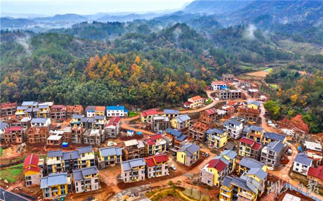 11月27日,绵绵冬雨中,远安县九子溪安置小区新村面貌初具雏形。