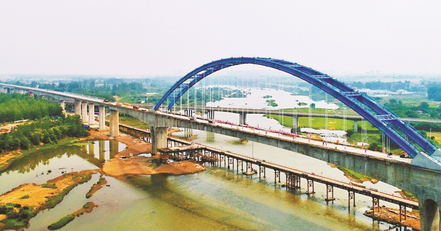 关键工程稳步优质推进。标段内所有桥梁、桥涵、隧道、路基、箱梁制架等分部工程全部按照施组完成节点工期,关键控制性工程——府河特大桥(200米)钢管拱于2017年4月11日精准合龙;2018年9月30日,按期完成标段内共计80.2公里无砟轨道施工任务。