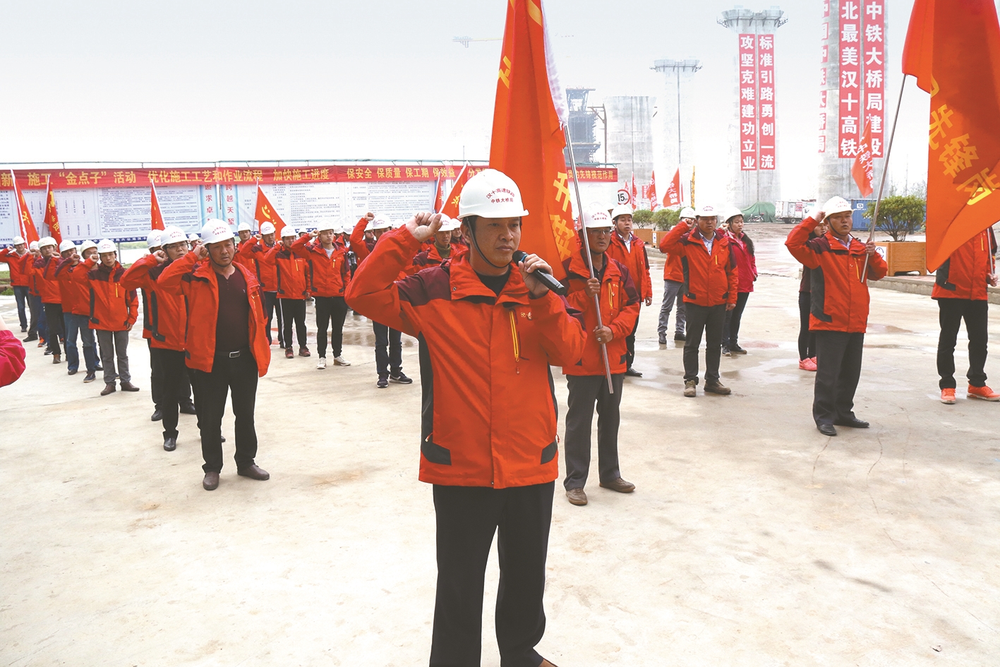 党旗耀荆楚,高铁铸丰碑。项目部以党建为引领,理顺工程项目管理体制和各层级管理关系,探究综合工程项目管理模式,打造项目管理先进样板和标准模块,实施样板引路、以点带面,进而创建综合工程项目管理示范线,不断提高工程项目管理水平和创效水平。