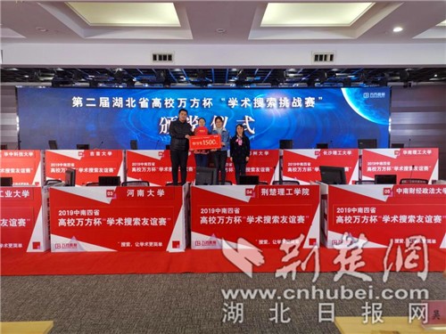 荆楚网客户端-荆楚网消息(记者 叶辉 通讯员 田云龙)11月27日,由湖北省高等学校图书情报工作委员会、湖北省高校数字图书馆、武汉大学、华中科技大学和万方数据联合主办的第二届湖北省高校万方杯 “学术搜索挑战赛”现场总决赛,在武汉大学图书馆总馆学术报告厅举行。至此,历时一个半月的挑战赛圆满落幕。