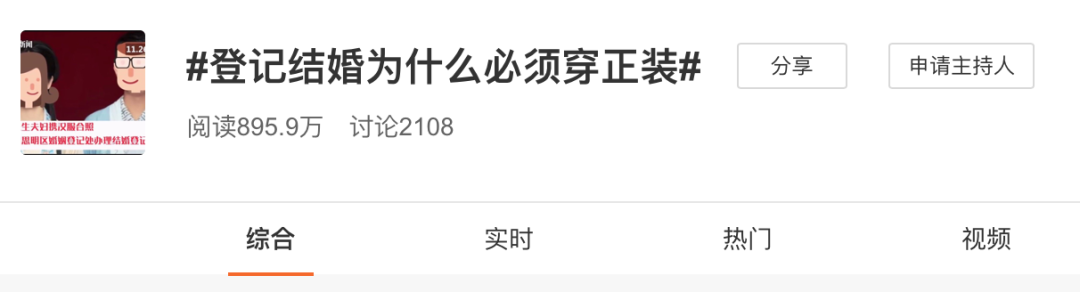 一对新人拿着汉服照到福建厦门市思明区民政局做婚姻登记,却被工作人员告知不能使用。#登记结婚为什么必须穿正装#话题登上微博热搜。