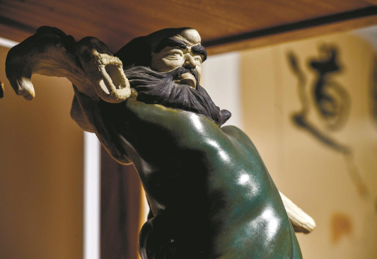 参观完古窑陈列馆,记者随工作人员来到青舍·瓷会所,这里是一个温暖有趣的多元生活美学空间,屋内摆放着山庄收藏和自制的青白釉瓷佛像、茶具、花瓶等手工艺作品,其中最引人注目的就是一副山庄自制的佛教题材瓷板画。