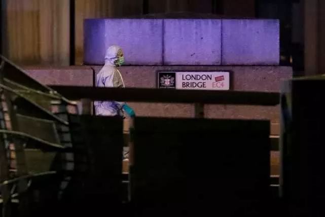 一名法医在伦敦桥恐袭案事发现场。图源:美联社